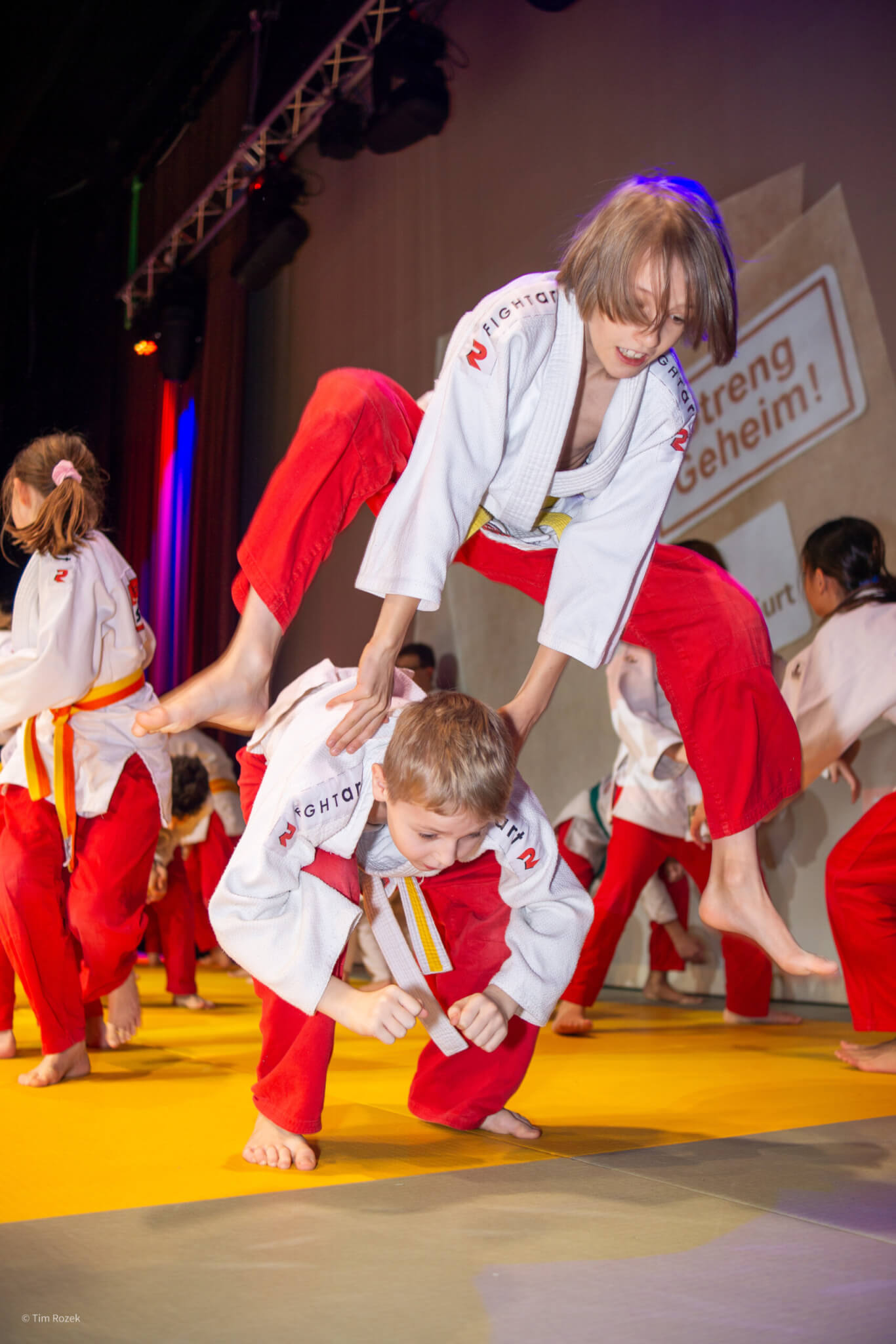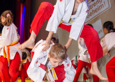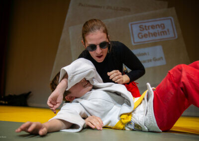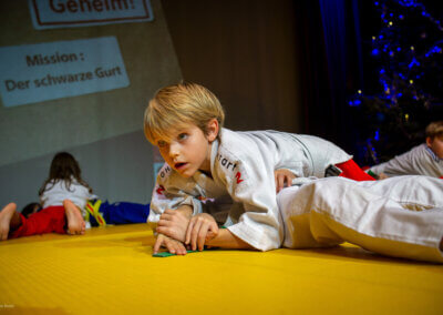 Die Jungagenten zeigten eindrucksvoll, was sie in den letzten Wochen und Monaten gelernt haben. Rollen und Fallen, das Einswerden mit dem Partner, saubere Wurftechniken und vor allem richtiges Training. Alles mit einem klaren Ziel vor Augen: die Mission Schwarzer Gurt.