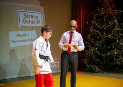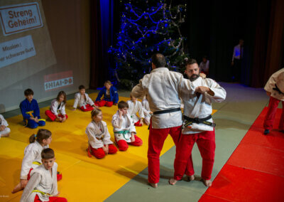 Die Weihnachtsfeier bei SHIAI-DO stand heuer ganz im Zeichen der Agentenschule. Agent X führte gemeinsam mit Nachwuchsagent Max und seiner Agentenausbildnerin Mara durch einen Abend voller Action, Spaß und Judo. Auch unsere Gäste, darunter Bürgermeister Herbert Janschka, begleiteten uns auf dieser besonderen Mission.
